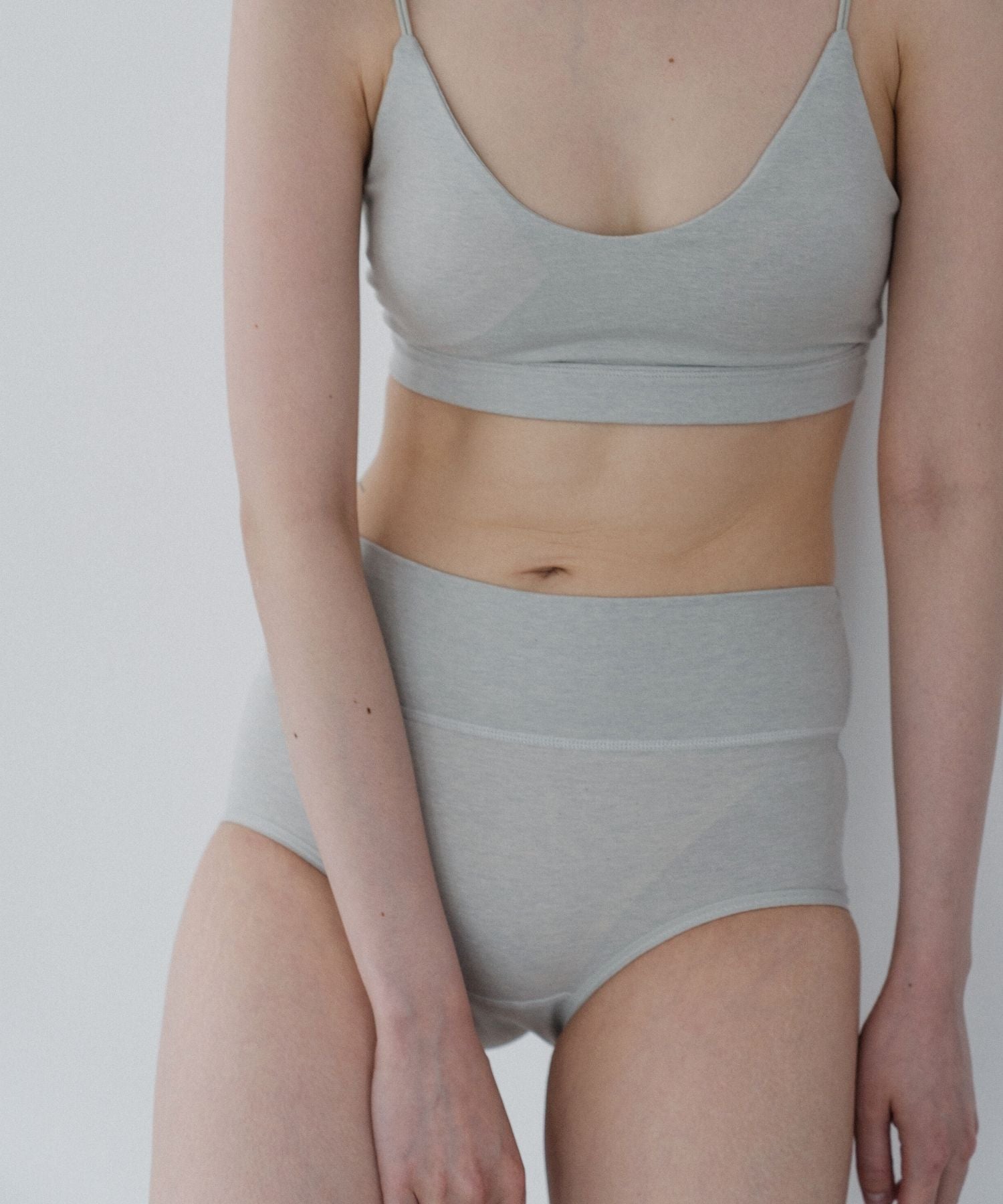 深めの股上でおなかをやさしく包み込み、ふんわりあたたかく守ります。